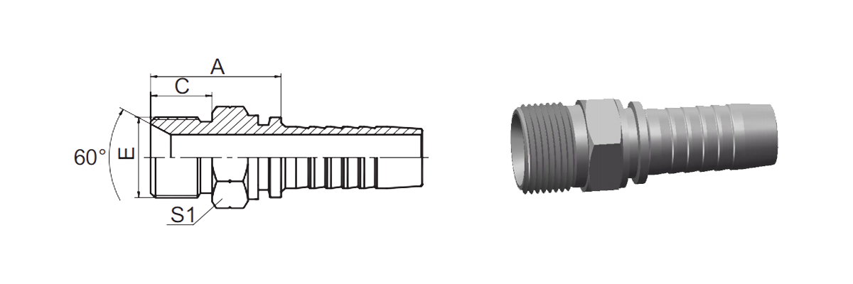 Home / Product / Standard Hose Fitting / British Standard Fitting / 12611 BSP Male 60° Cone Seat