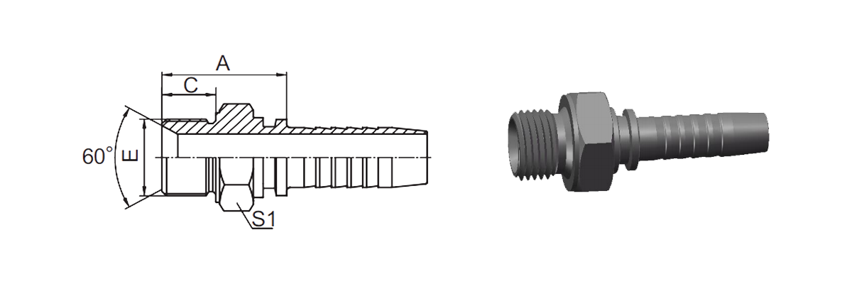 Home / Product / Standard Hose Fitting / Metric Standard Fitting / 10611 Metric Male Double Use For 60°Cone Seat Or Bonded Seal