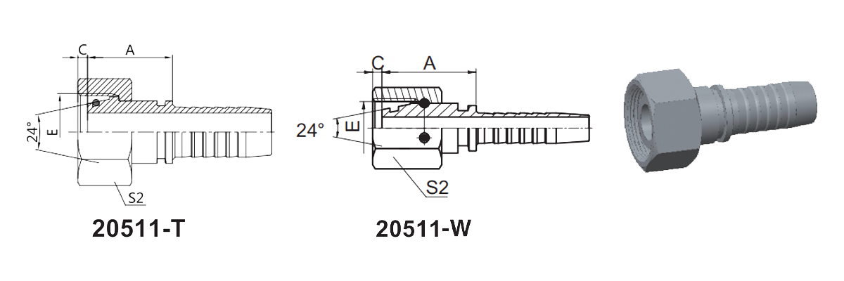 Home / Product / Standard Hose Fitting / Metric Standard Fitting / 20511 Metric Female 24° Cone O-Ring H.T.Din3865