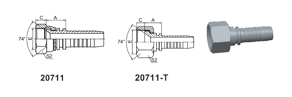 Home / Product / Standard Hose Fitting / Metric Standard Fitting / 20711 GB Metric Female 74° Cone Seat