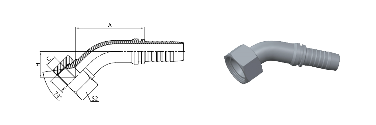Home / Product / Standard Hose Fitting / Metric Standard Fitting / 20741 45° GB Metric Female 74° Cone Seat